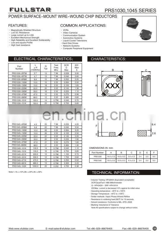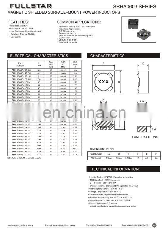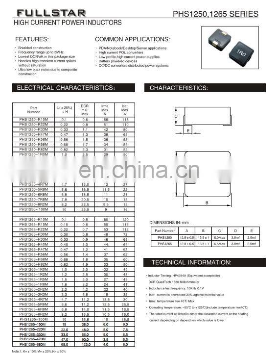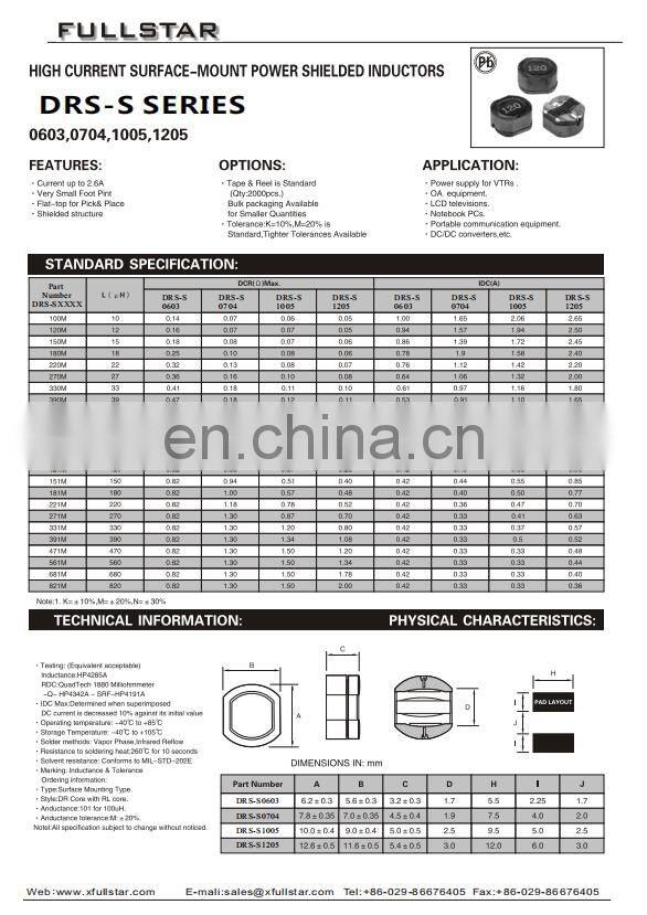 0.68uh 0.47uh 0.22uh High Current SMD Shielded Power Inductors for DC-DC Converters