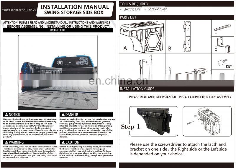 Universal Black With Lock Single Cab Storage Swing Case Truck Tool Box Pickup for Toyota Hilux Nissan Isuzu