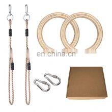Wooden Gymnastic Rings Muscle Training Ring With Buckle Ropes Indoor Workout Fitness Gym Exercise Pull Ups Outdoor