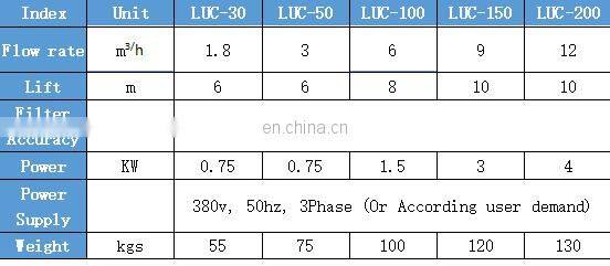LUC series Portable oil purifier is mainly used for precision filtering of solid impurities from insulating oil, turbine oil, lubricating oil, etc. This machine is usually equipped with one to three filters, or more than three filters can be configured according to customer requirements, it is Lightweight and flexible, simple operation. This machine can also be used for long-distance, high-lift oil transfer and oil injection. Widely Used in power plants, power stations, power supply bureaus, oil depots, metallurgy, chemicals, railways, machinery, aviation and other industries, for machinery oil, hydraulic oil, turbine oil, compressor oil, insulating oil, water glycol, diesel, gasoline, etc. Transfer of liquid media and simultaneous removal of impurities.