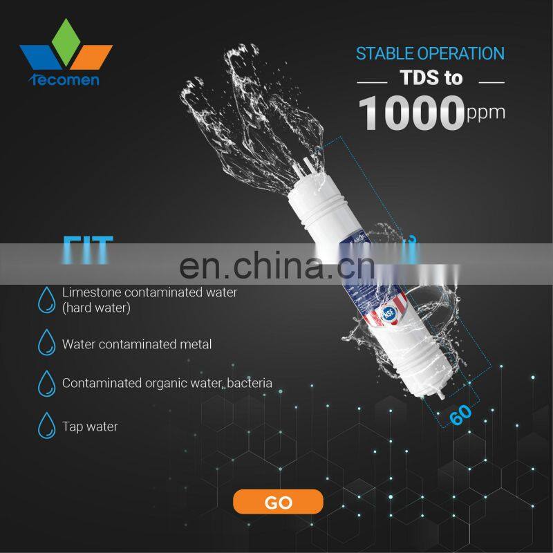 ✅ Water treatment capacity with high input TDS (500 ~ 1000ppm).