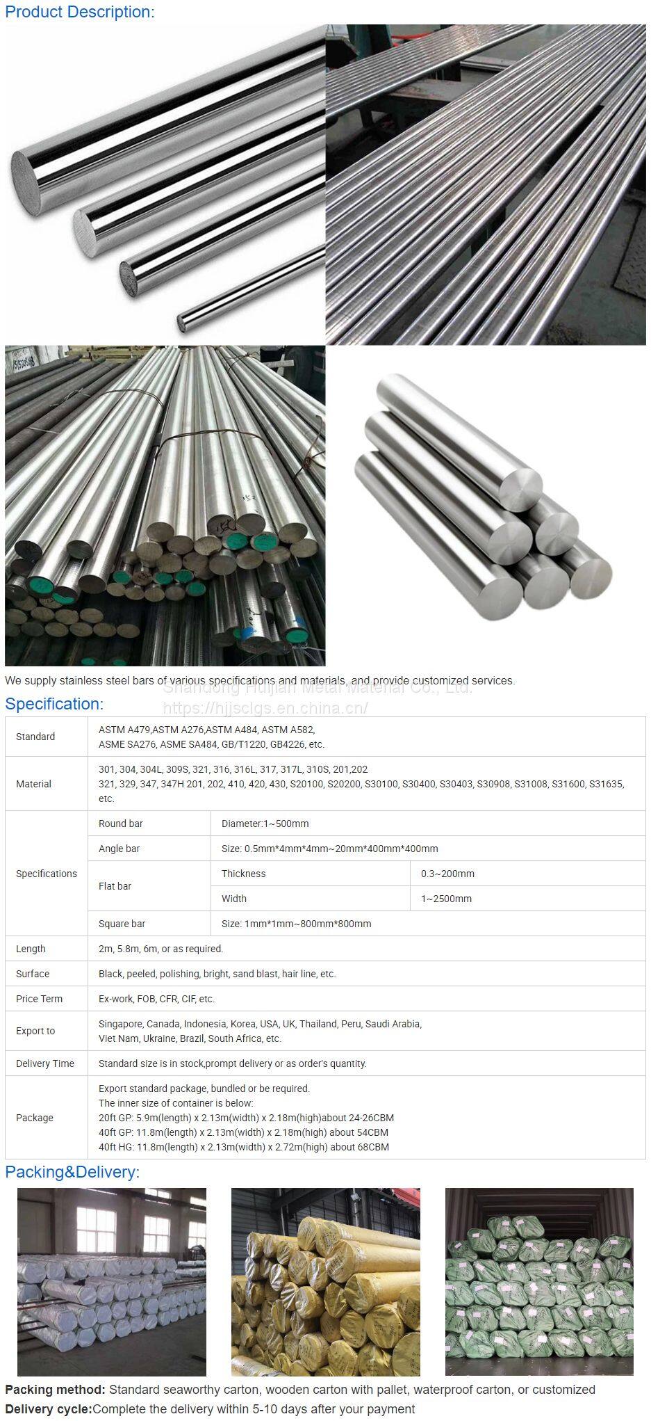 Ss302 303 304 304L 309 309S 310 310S 314 316 316L 420 431 Stainless Steel Round Bars