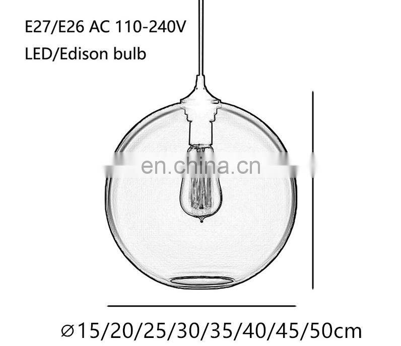 Tonghua Big Round Clear Glass Shade Deocrative Pendant Lamp Chandelier E26 E27 Lamp Holder Vintage Hanging Light