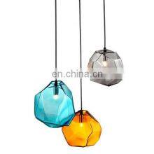 Modern Crystal Shape Colorful Glass Decorative Pendant Light for Hotel