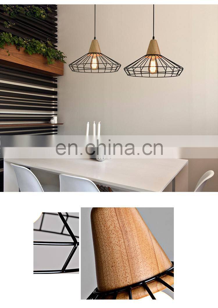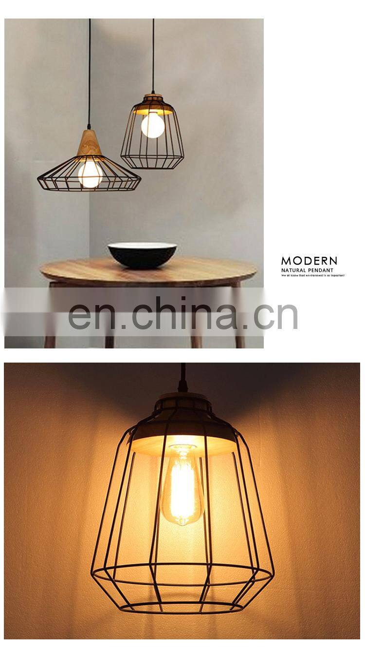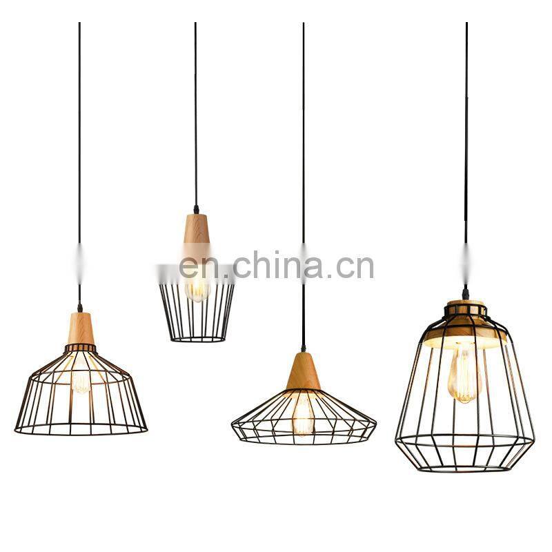 Retro Industrial E27 Solid Wood Lamp Holder Pendant Light Wrought Iron Birdcage Hanging Lamp Nordic Creative Chandelier