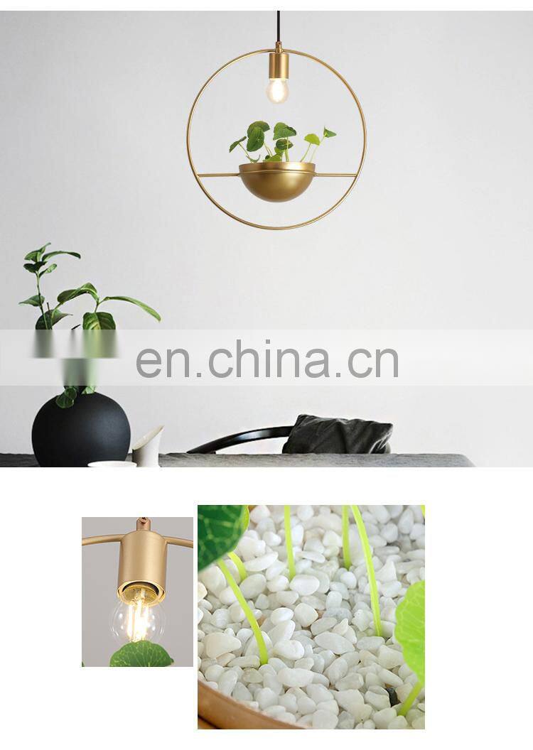 Single Rings Hotel Decoration Chandelier Gold Plated Hanging Lights Golden Plants Pendant Light