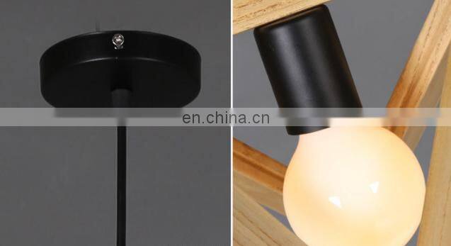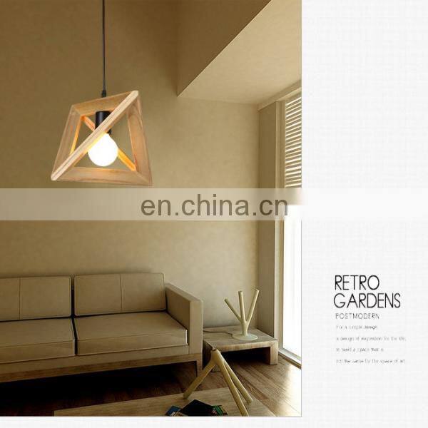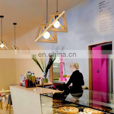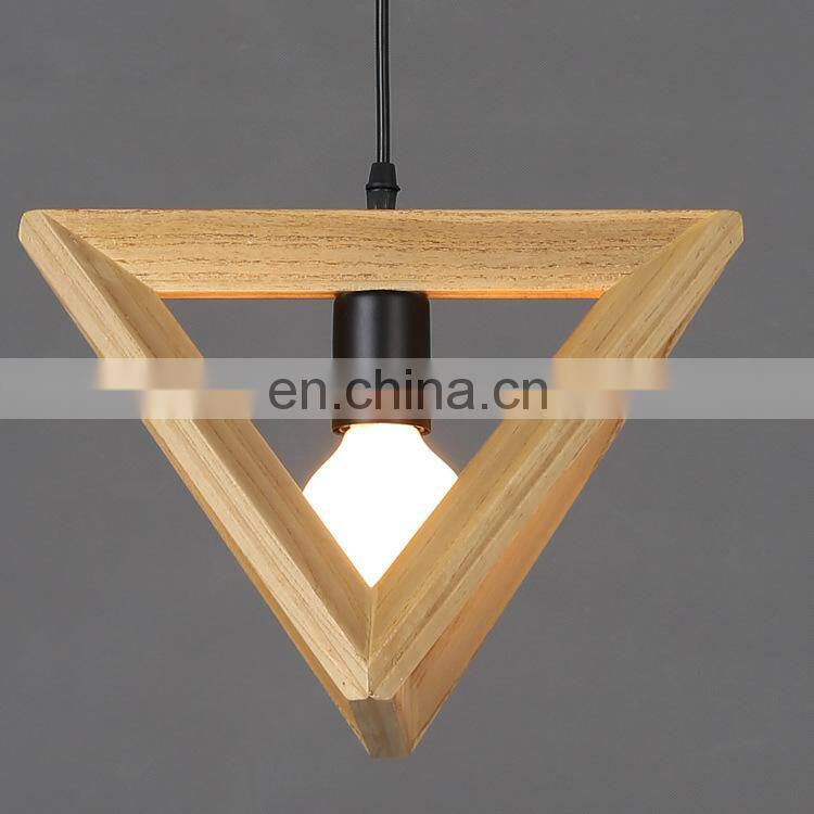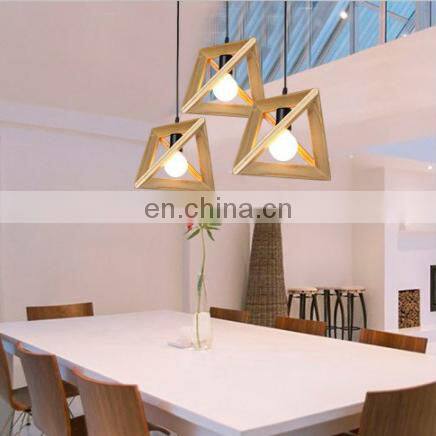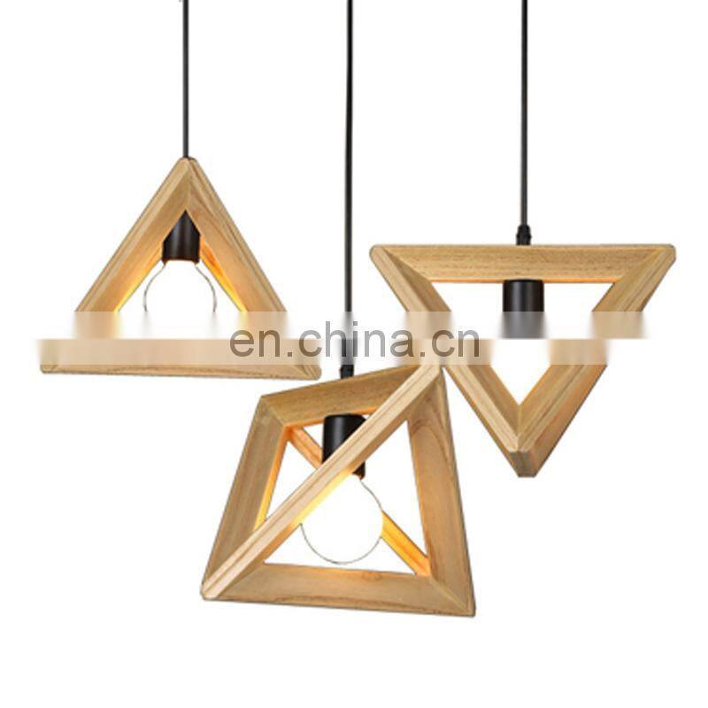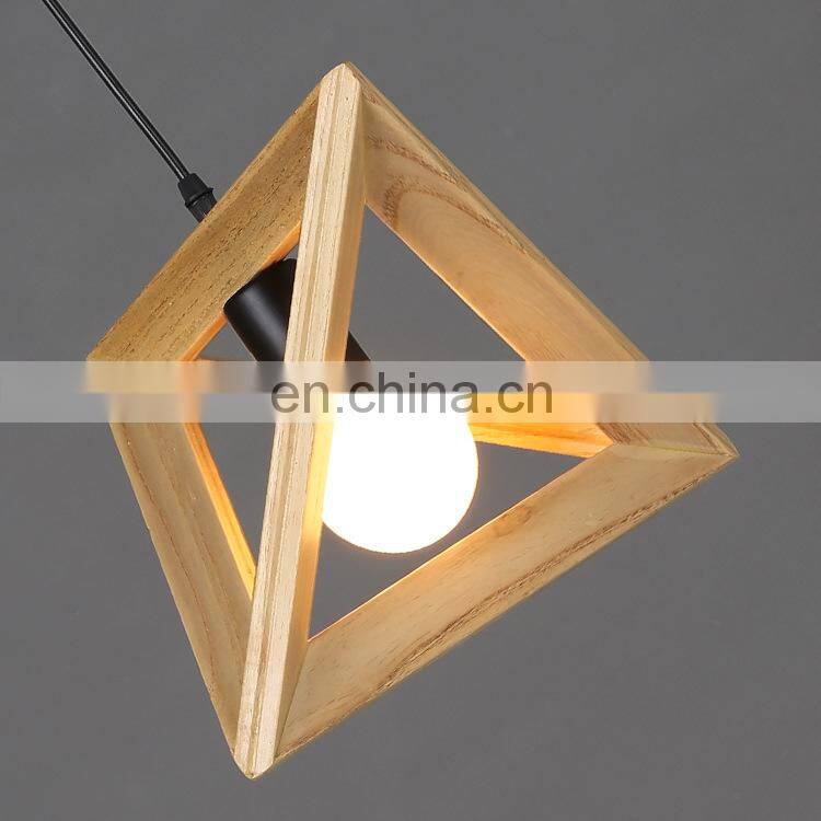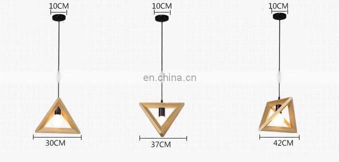 Wood Retro Modern Hanging Light Chandelier Triangle Polygon Restaurant Bar Creative Decoration LED Chandelier