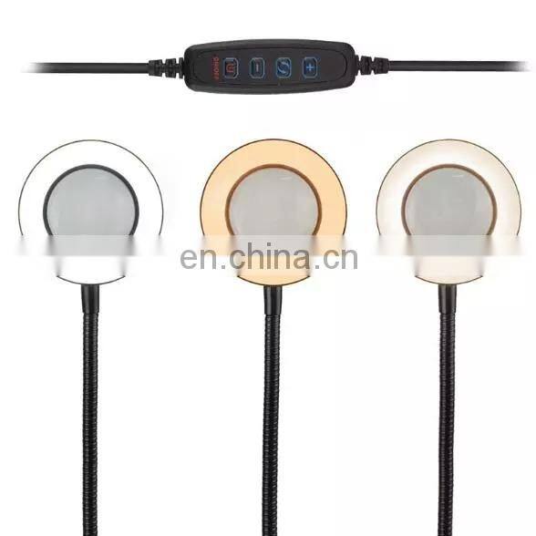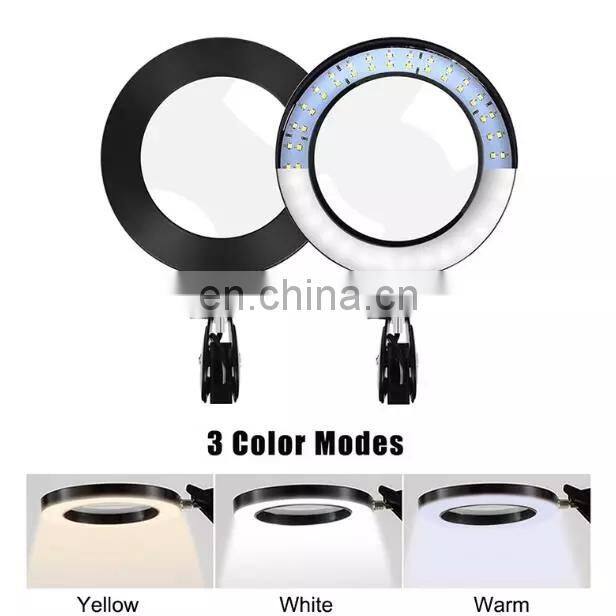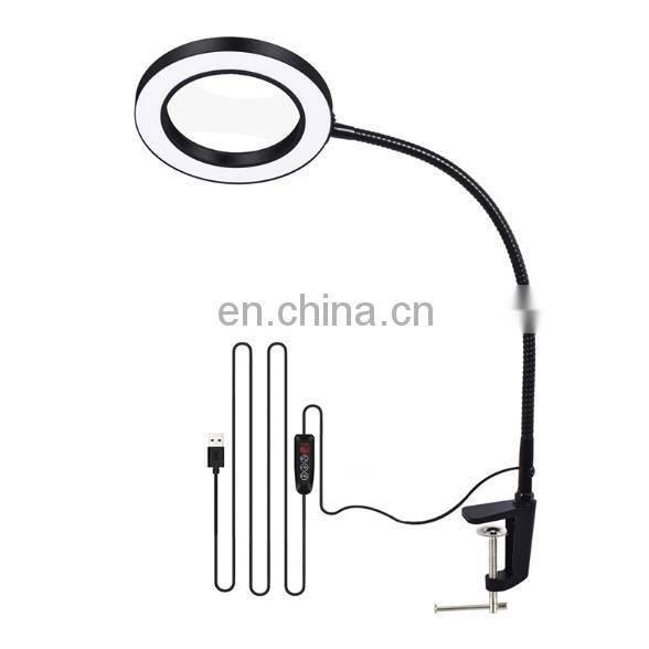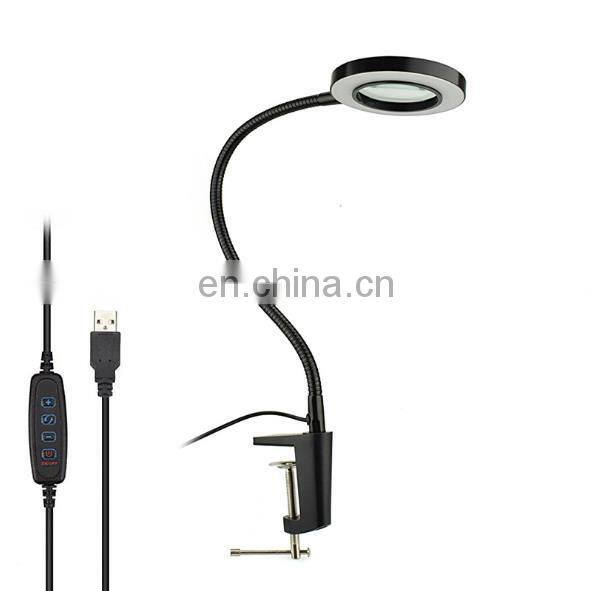 Tonghua New Round LED Foldable Eye-propection Iron Reading Desk Fixed Lamp USB Port Magnifying Glass Available Table Light
