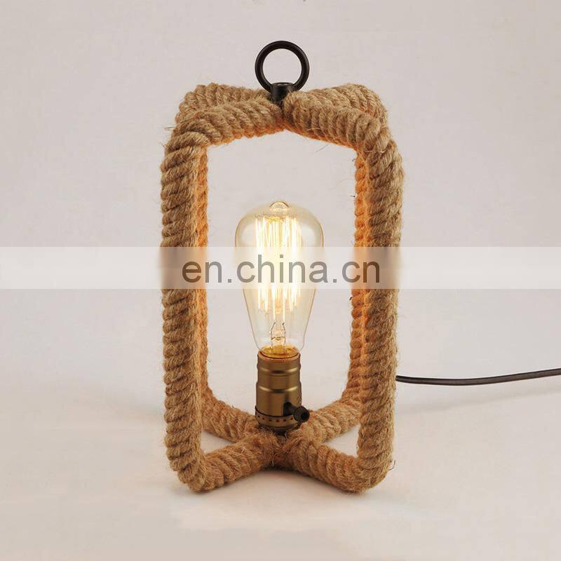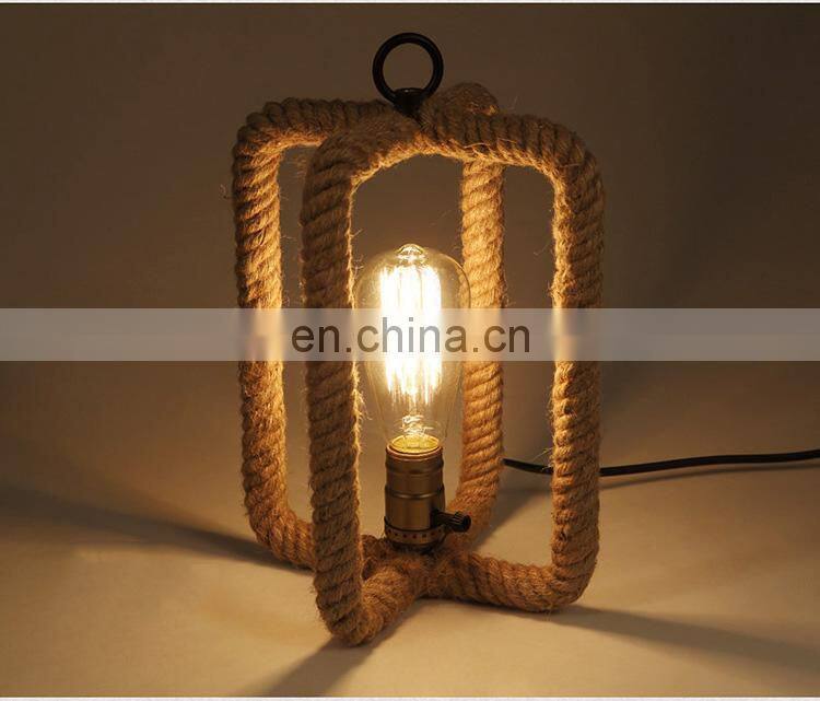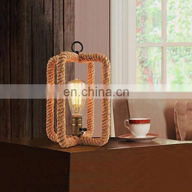 America Retro Loft Table Light E27 Hemp Rope Desk Light Vintage Lamp Bedside Office Study Hotel Cafe Light Lamp
