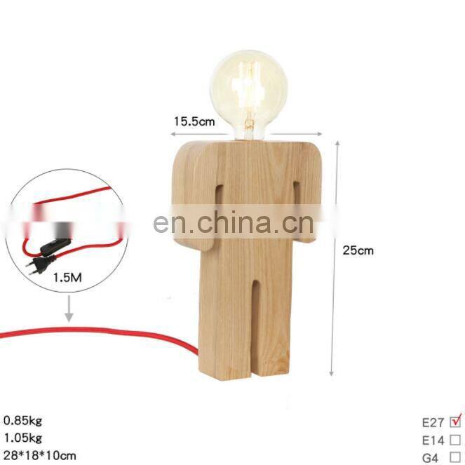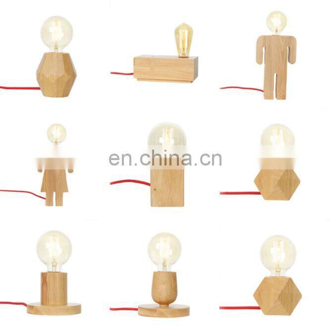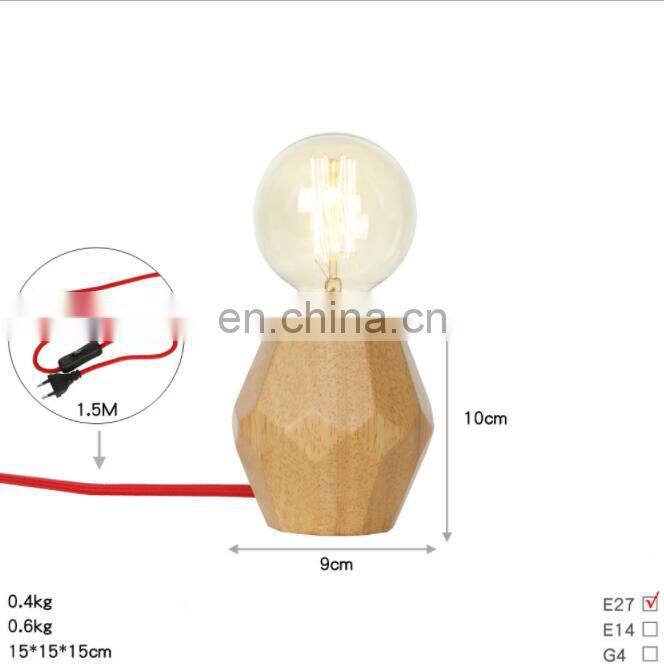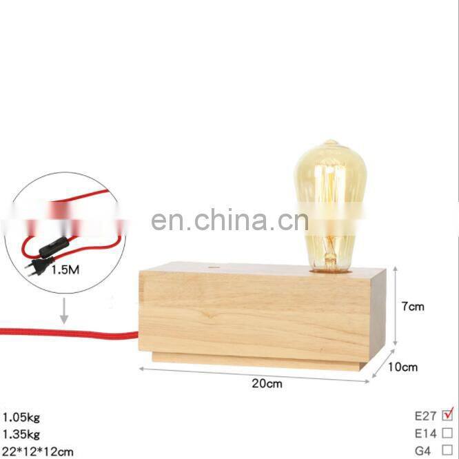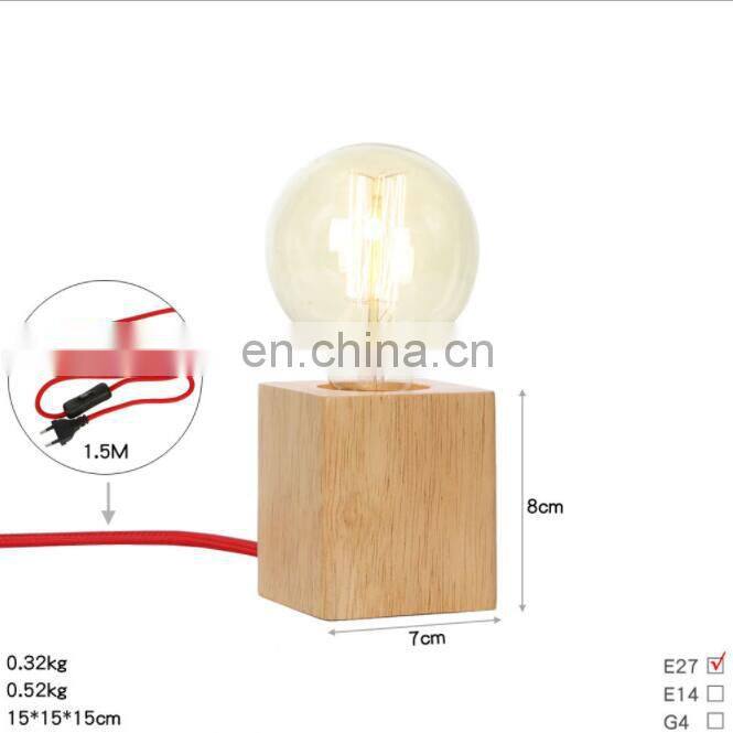 Tonghua Vintage Cubic Natural Wood Filament Light With Bulb Holder E26 E27 Retro Bedroom Table Lamp Desk Light