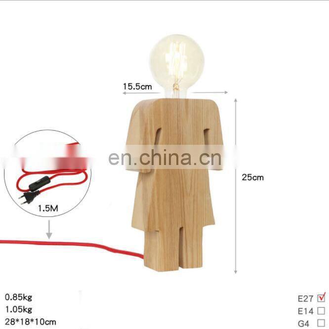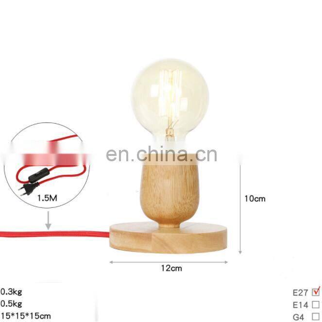 Tonghua Vintage Wood Filament Light With Bulb Holder E26 E27 Retro Bedroom Table Lamp