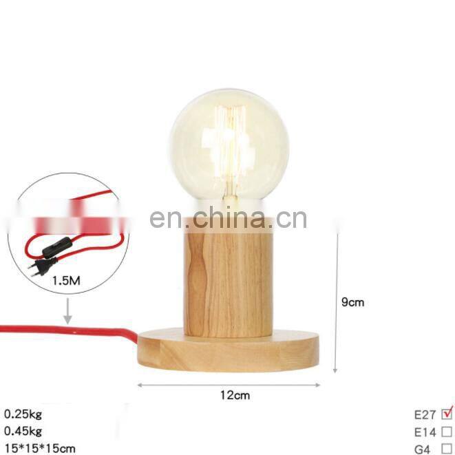 4 Color Wood Base E27 Aluminum Socket Table Lamp Edison Bulb Dest Lamp