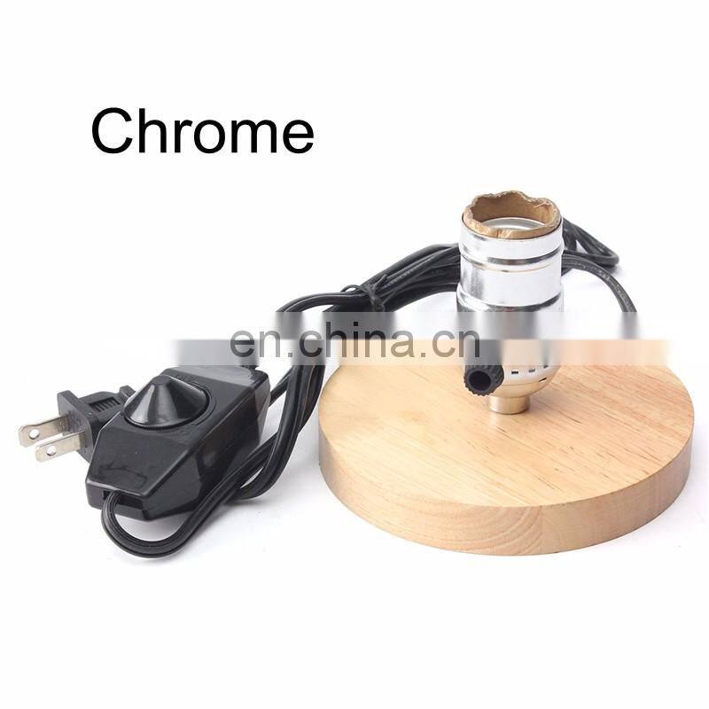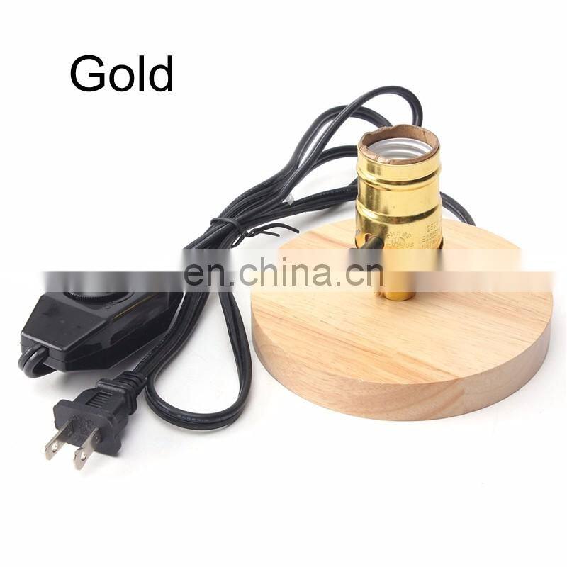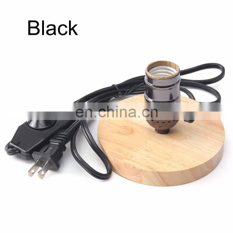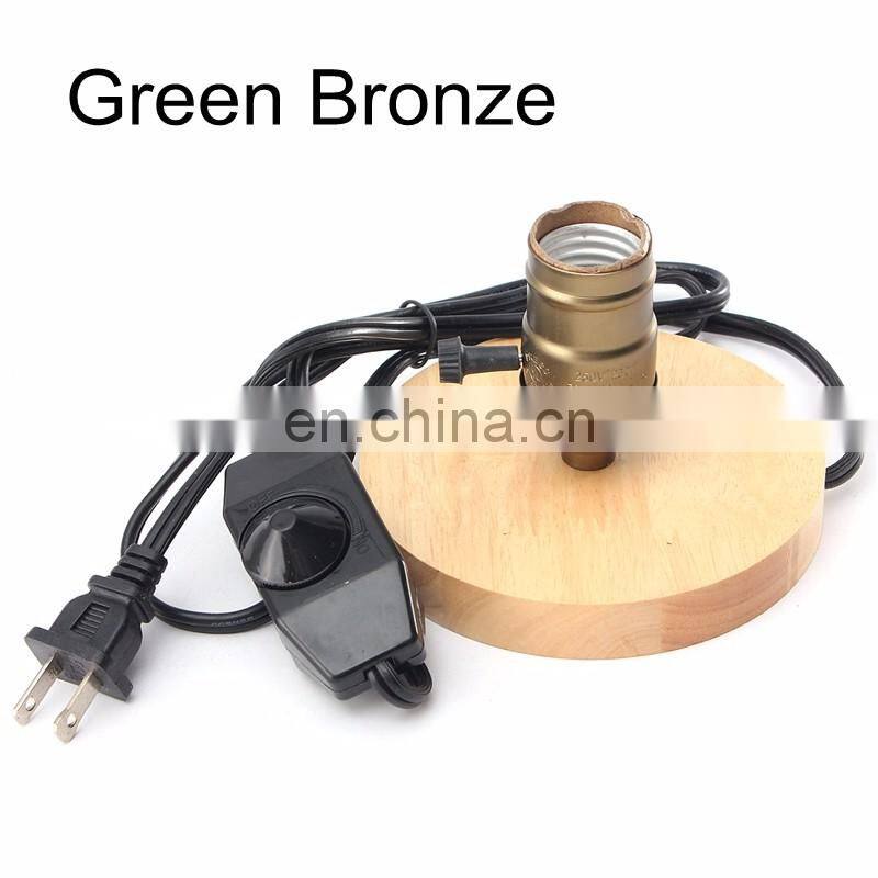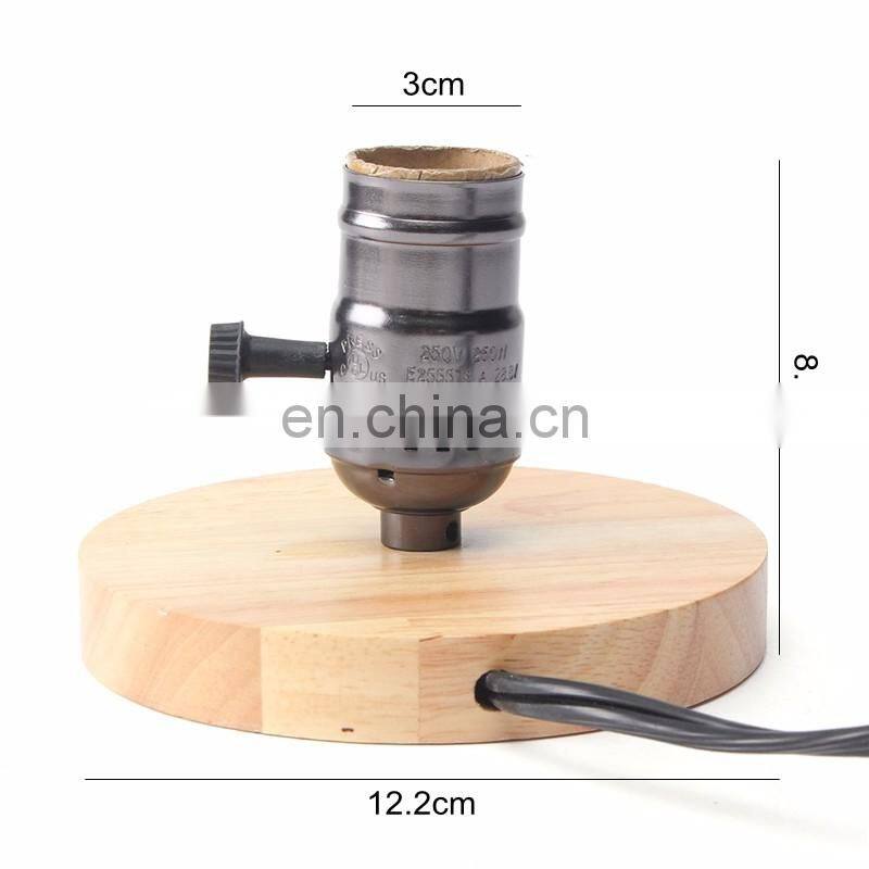 Simple Style Vintage Round Wood Base Metal Lamp Holder Table Lamp