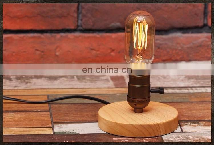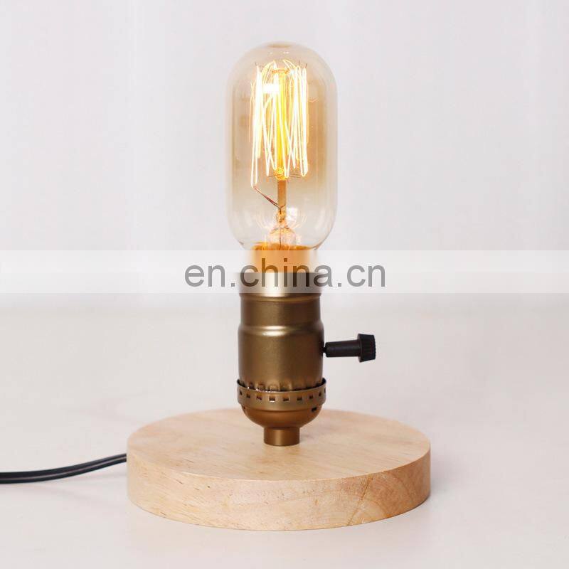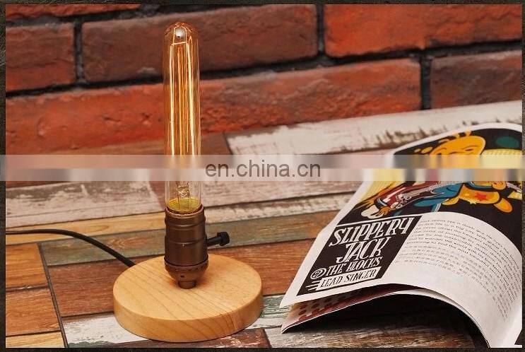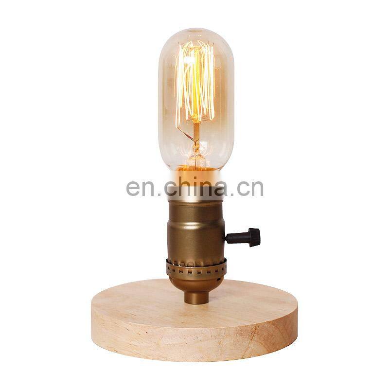 Tonghua Vintage Wood Filament Light With Bulb Holder E26 E27 Retro Bedroom Table Lamp