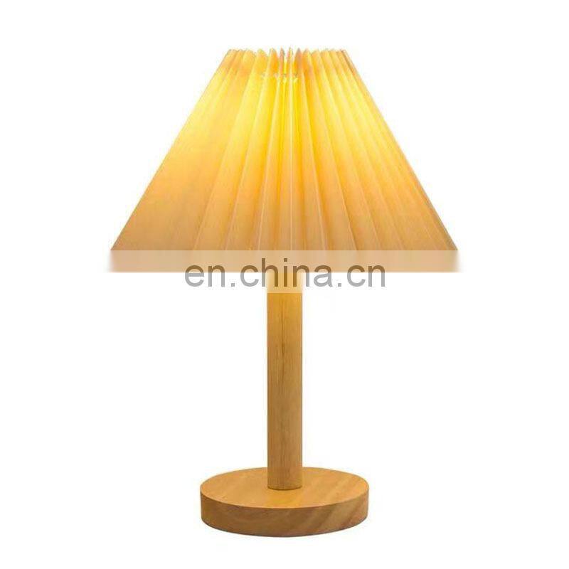 Home > Products > Table Lamp > Creative Home Wood Round Base Desk Light Vintage Pleated Shade Table Lamp