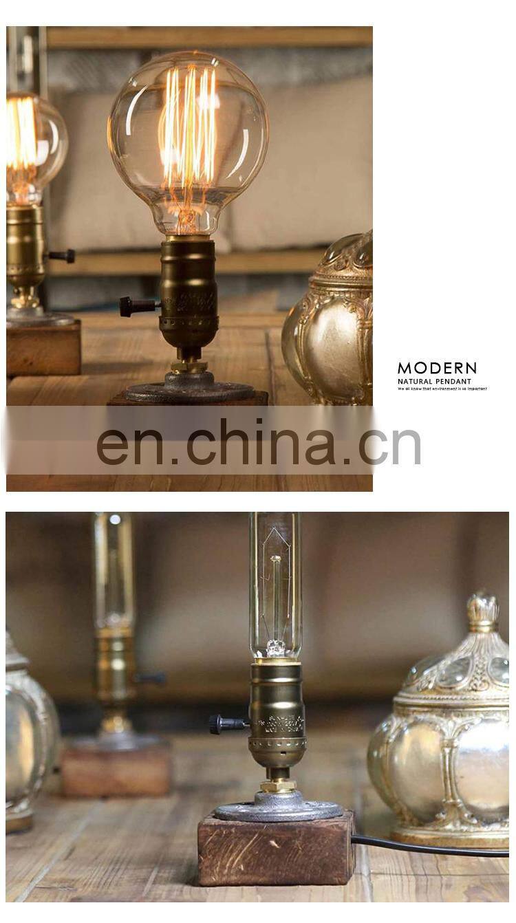 Home > Products > Table Lamp > Antique Metal Table Lamp Solid Wood Base Led Desk Lamp Hotel Decoration Edison Bulb Desk Lamp E27