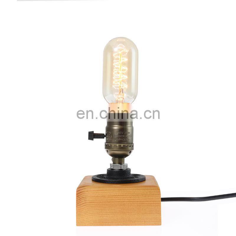Antique Metal Table Lamp Solid Wood Base Led Desk Lamp Hotel Decoration Edison Bulb Desk Lamp E27
