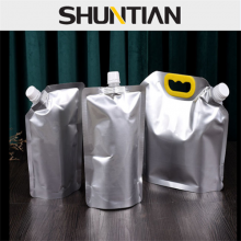 Aluminium Silver Foil Liquid Spout Bags, Liquid Packaging Spouted Pouches With Corner Spout