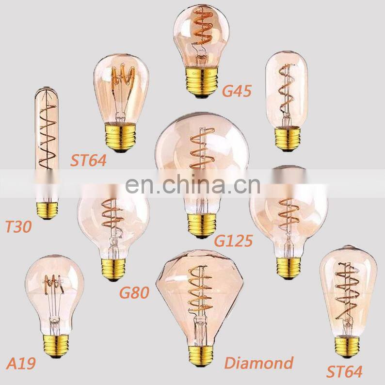 ST64, ST58, A19, T45, G80, 95, G125, T30, C35, etc. LED filament bulb