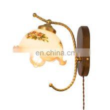 American Pastoral Retro Glass Wall Lamp With Wooden Ceiling Rose Decorative Lamps