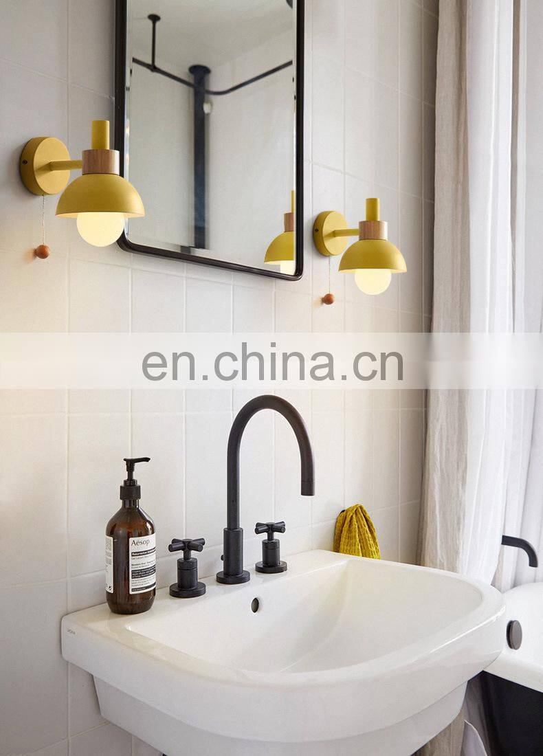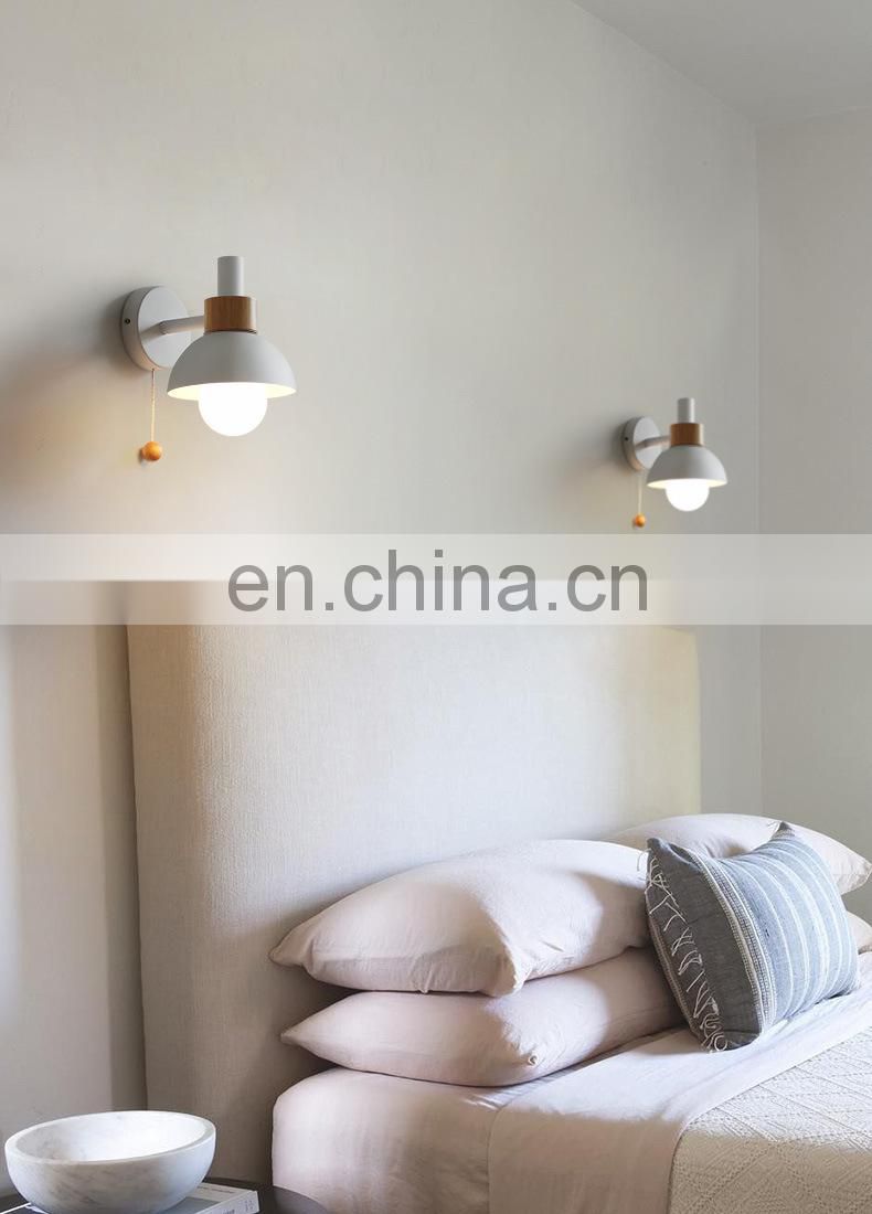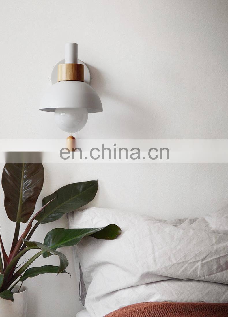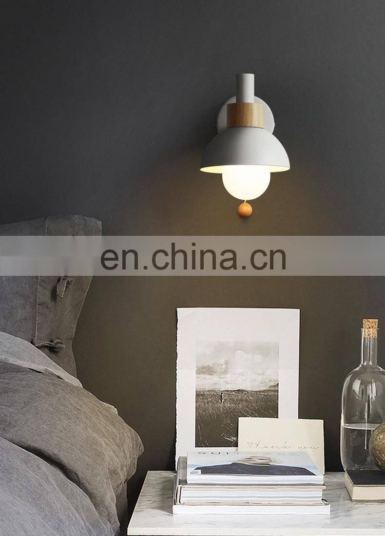 Modern Minimalist Macaron Wood Belt Iron Art Led Wall Lamps for Decoration