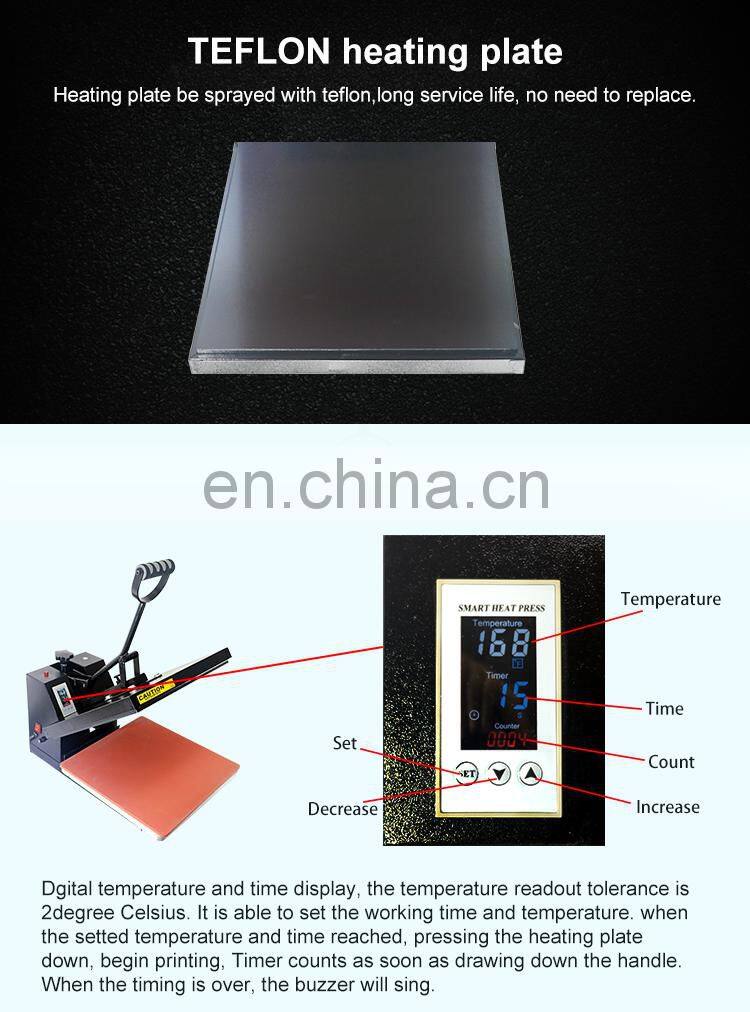 5.The platen is Teflon-coated. The heating plate is sprayed with teflon, keeping heating plate clean, longer using life than teflon fabric, not need changed.