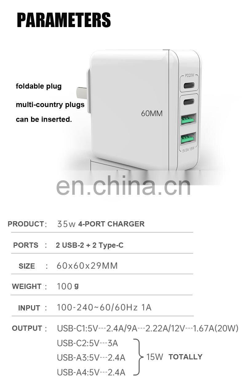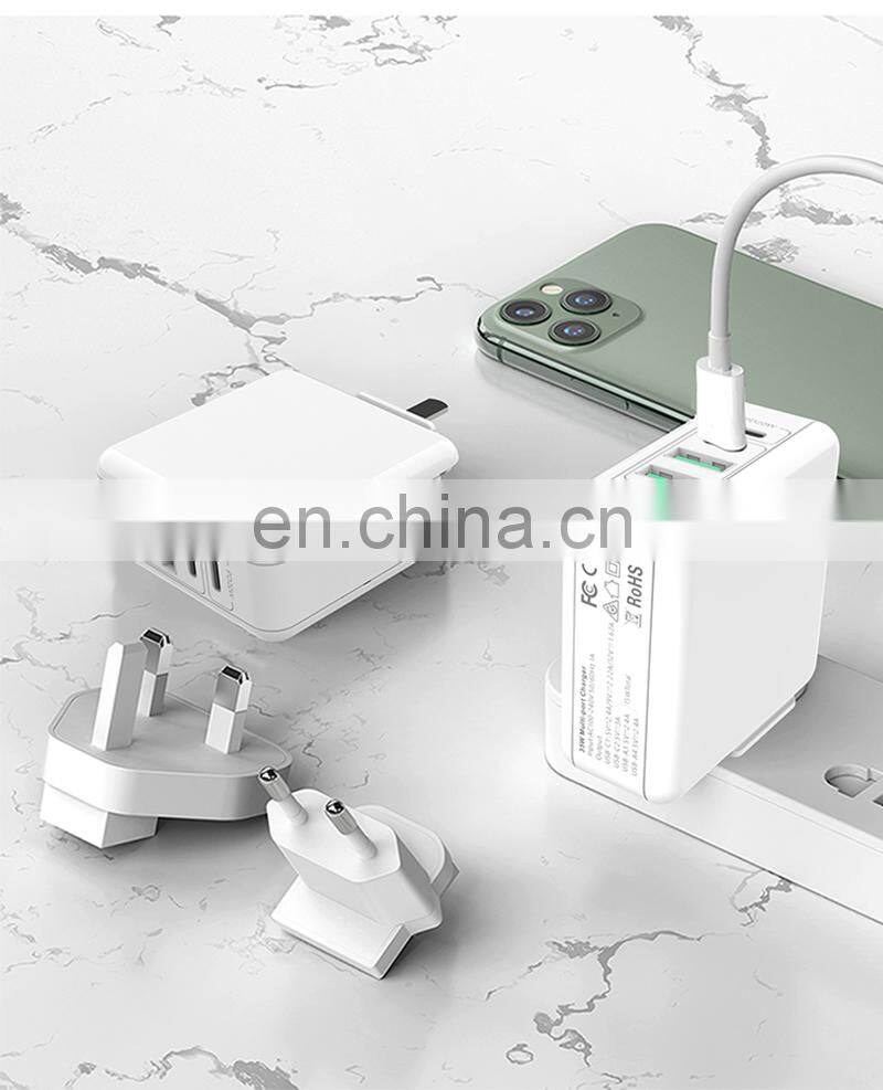 4 Port Usb C Quick Charger 35W Portable Mini US EU UK Plug Replaceable PD3 Power Adapter Multi Port Fast Travel Wall Charger