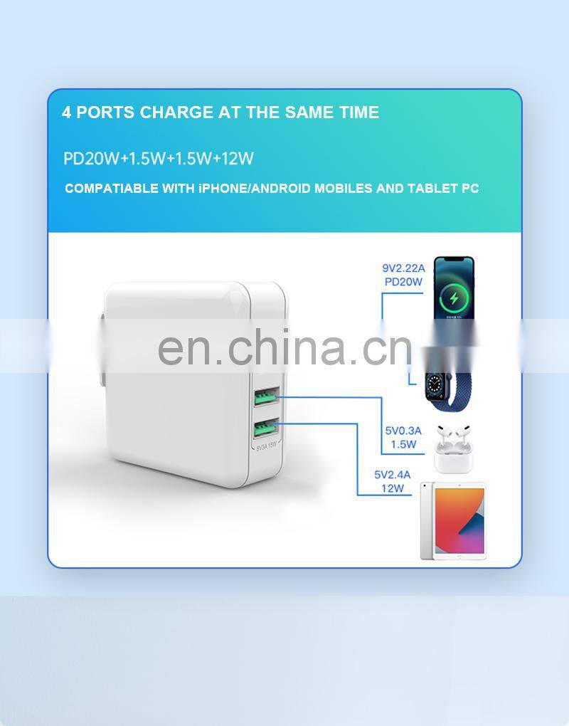 2021 New Arrival Travel Home Wall USB Quick Charge 3.0 Charger Multi-ports 4 USB PD 3.0 Fast Charger for Mobile Phones