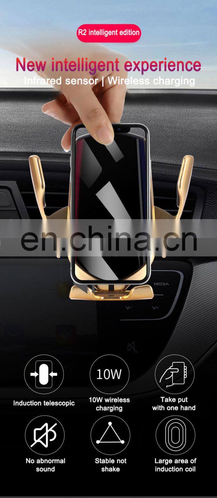 R2 Car Charger 2020 New Product Factory Wholesale Phone Holder 10W Car Wireless Charger Charging Qi For Samsung