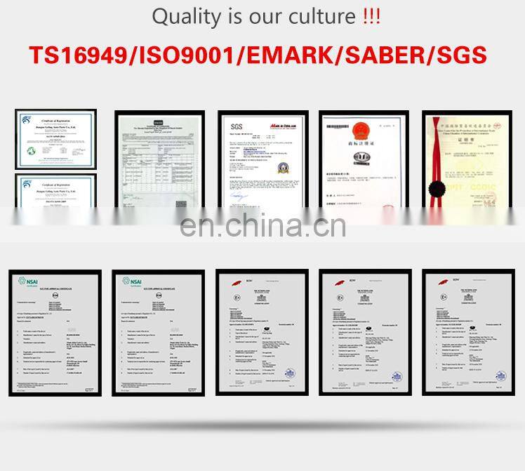We pay great attention on quality control from the beginning to the end. We use all the new materials, quality inspector will check every step. We make sure that all the goods meet the standard of TS16949.ISO9001:2008.
