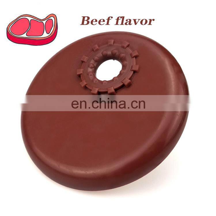 Description  | 1. Frisbee toy, TPR material, non-toxic, not edible. 2. Add food-grade flavor to the raw materials for injection molding. 3.There are 5 flavors to choose from: beef/chicken/bacon/milk/mint. 4. Appearance is suitable for dog cohesion.  |