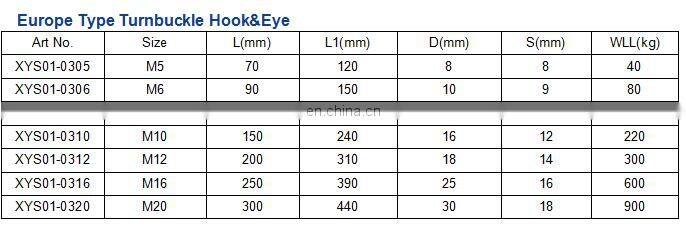 - OEM Heavy Duty 304 Stainless Steel Hook Eye Turnbuckle