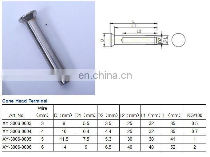 Home > Products > rigging screw and Swage terminals > Stainless Steel Cone Head Terminal Swage, Swage for All Marine, Architectural and Government Needs