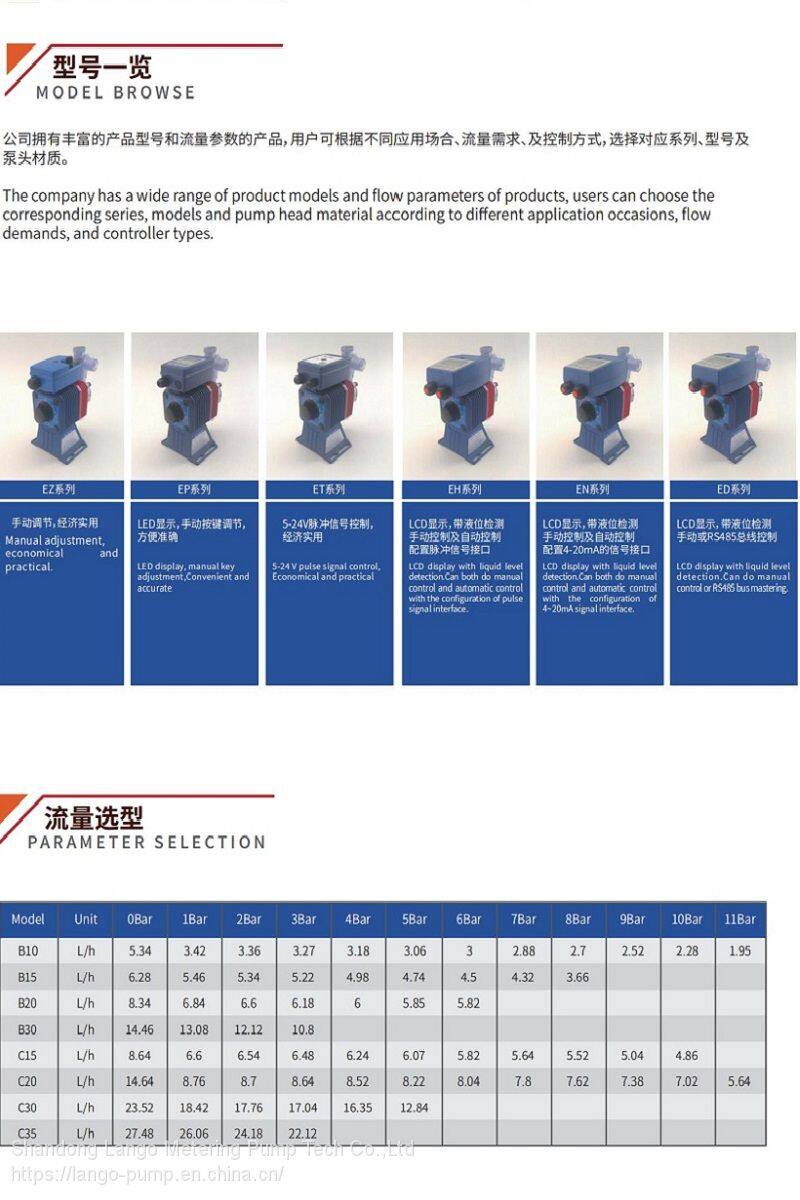 Shandong Lango Metering Pump Tech Co. Ltd commits to the research, production and sale of dosing pump. Our company accumulate rich experience in the production of dosing pump as well as advanced production technology, which is widely used in water purification, sewage treatment, pharmaceutical, chemical, packaging, electroplating, building refrigeration systems and other industries.