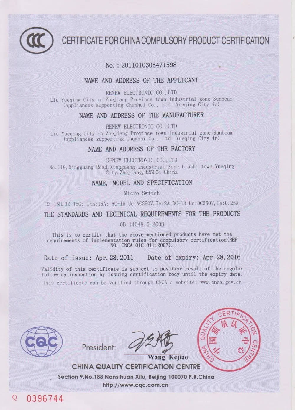 Yueqing Renew Electronic Co.,ltd