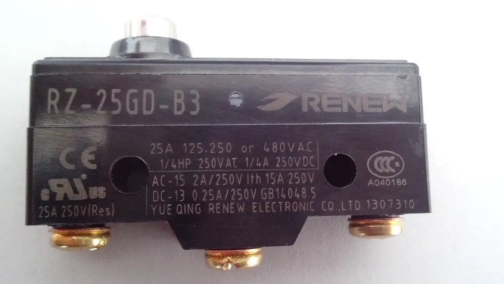 Name: Micro switchModel No.: RZ-15GD-B3 at 15A, 125, 250 or 480vac