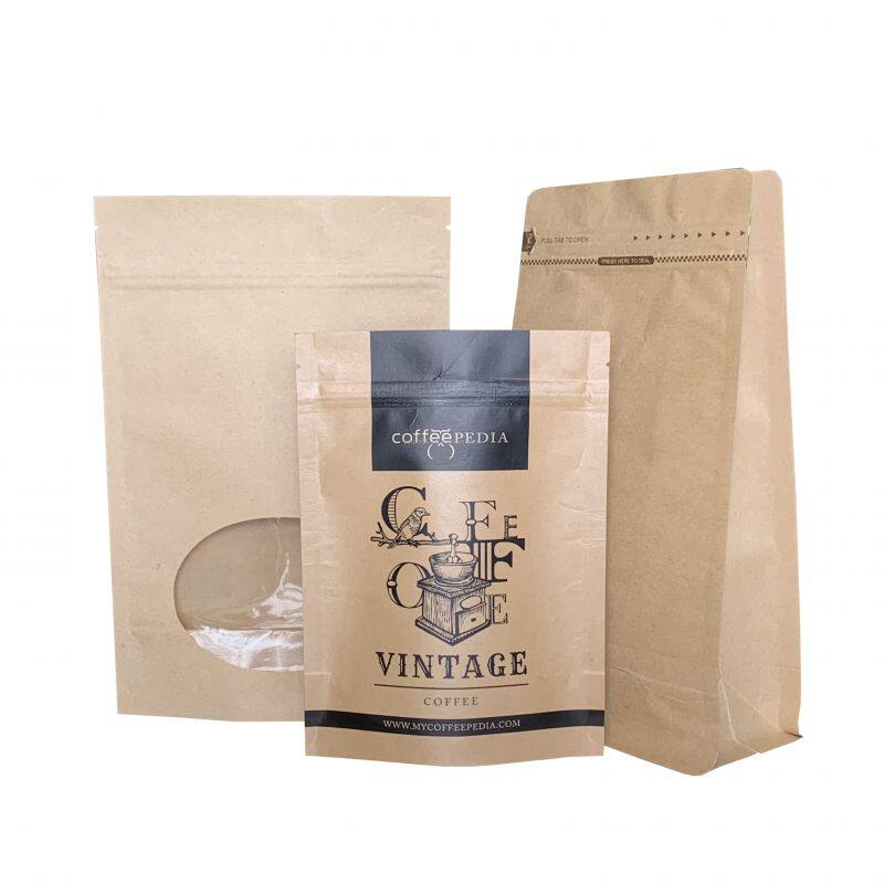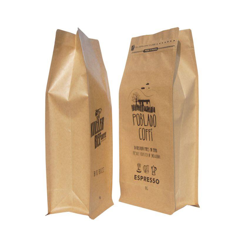 Home > Products > Coffee/Tea/Powder Bag > Eco Friendly Coffee Bag Flat Bottom Brown Paper Kraft Bag