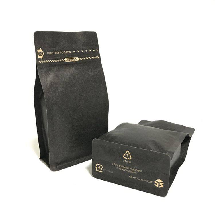 Matt Black Kraft Paper Pouches For Coffee, Moisture Proof Resealable Stand Up Kraft Paper Coffee Bean Packaging Bags
