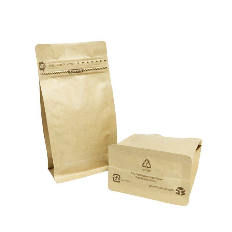 Environmental Friendly Compostable Food Grade Custom Stand Up Zipper Kraft Paper Full Degradable Paper Plastic Packaging Bags
