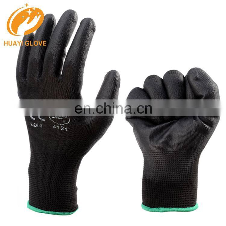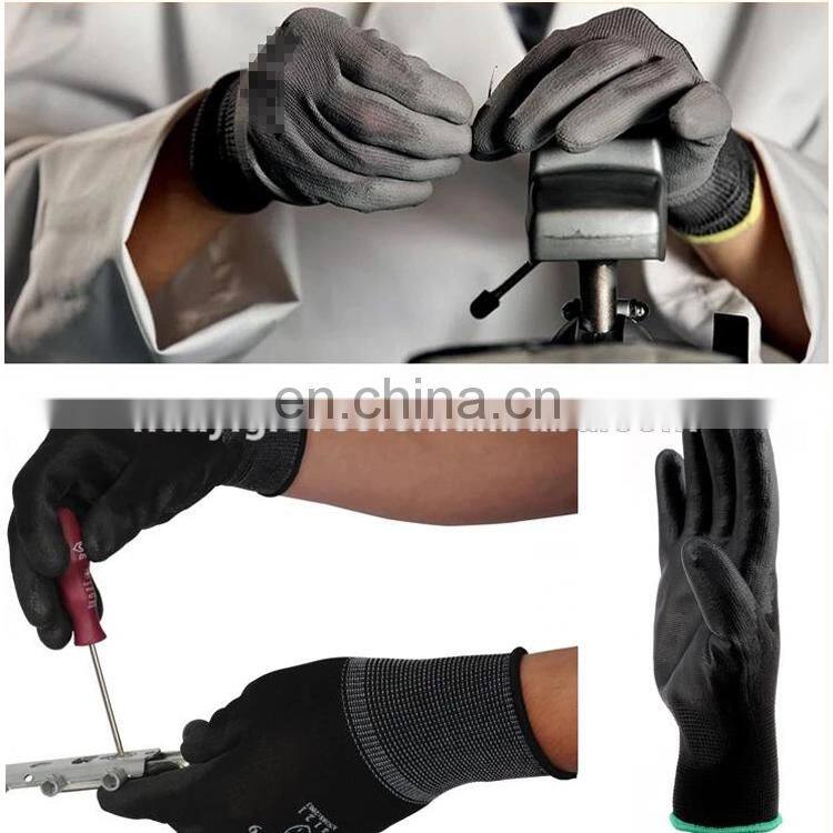 Black PU Coated Nylon Polyester Cheap Work Gloves EN388 CE 3141 Auto Repair Work Gloves
