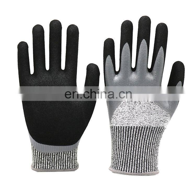 High Quality Level 5 Cut Resistant Gloves Nitrile Sandy AnCut Resistant Gloves Nitrile Sandy Anti Cut Gloves for Assembly Worker