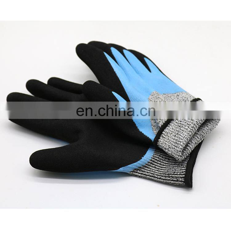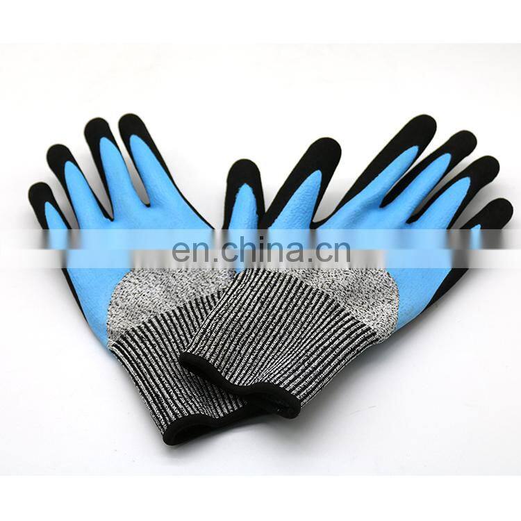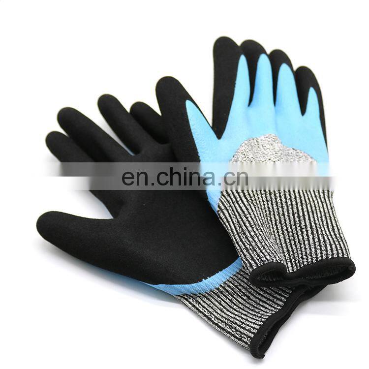 Waterproof Level 5 HPPE Rubber Safety Anti Cut Proof Construction Industrial Double Nitrile Coated Protective Gloves
