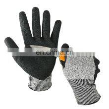 HY 13G Cut Resistant Level 5 Industrial Crinkle Latex Safety Gloves Black Latex Gloves Guanti Antitaglio Da Lavoro
