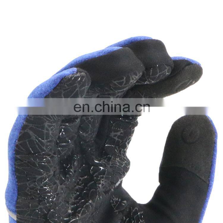 - Blue&white Polyester Thread 13 Gauge Knitted Deep Blue Foamed Wrinkled Latex Palm Coated Safety Work Gloves