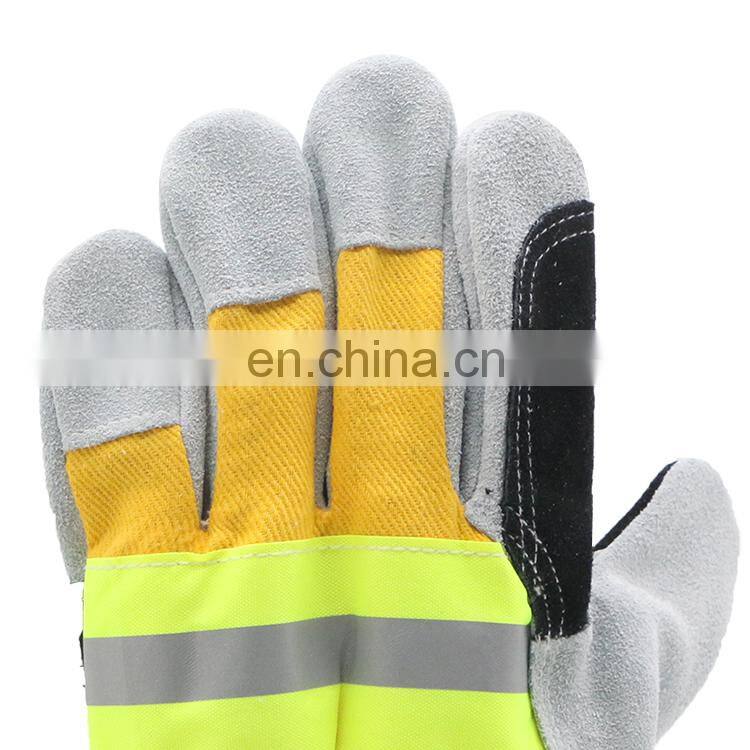 High Visibility Oilfield Mining Work Cow Split Leather Gloves Hard Wearing