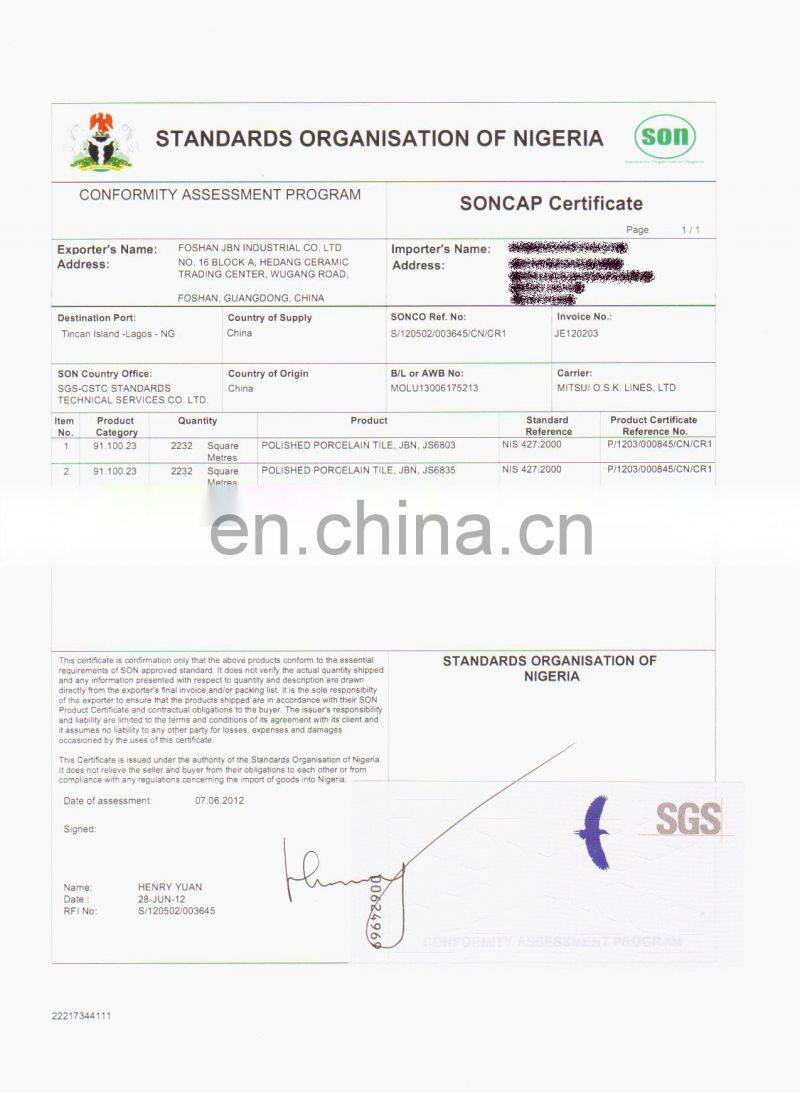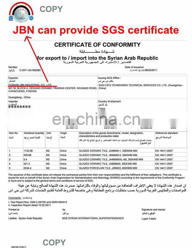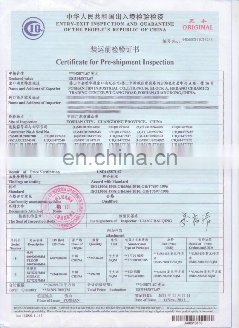 A: Our company had been export tiles for many years, we are experienced in dealing with CIQ, SASO, BV, SGS, SNI certificates, etc..
