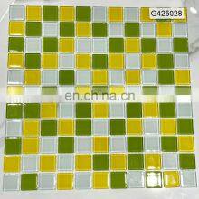 Green and Yellow Mix Color Crystal Mosaic Tiles Swimming Pool Glass Mosaic Tiles Splash Back Hot Melted Pool Mosaics Tiles