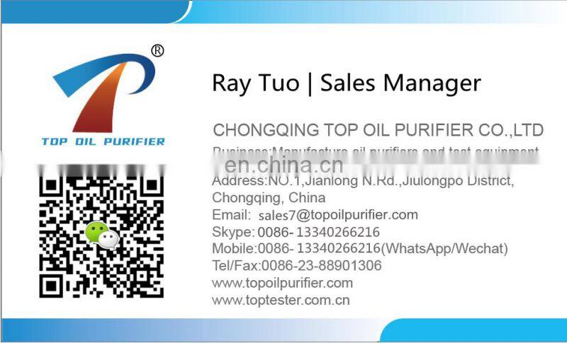 Located at Chongqing city--a southwest electromechanical manufacturing center as well as national municipality, Chongqing TOP is a professional leading manufacturer and supplier of oil purifiers and various related testers. Our company consists of departments respectively for technological development, machinery manufacture, instrument manufacture and quality control etc.