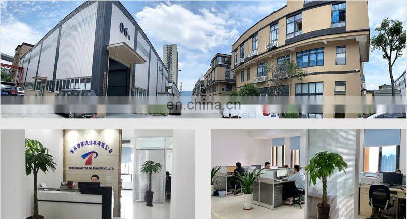 Chongqing TOP Oil Purifier Co.,Ltd, established in 2 0 1 2 , is a professional manufacturer engaged in the research, development, production, sale and service of oil purifiers and various related testers.We are located in Chongqing China - a southwest electromechanical manufacturing center as well as national municipality, which is one of the most well-known oil purifier manufacturers in southwest China. Dedicated to strict quality control and thoughtful customer service, our experienced staff are always available to discuss your requirements and ensure full customer satisfaction. On basis of mature development and manufacture technology and highly qualified production management team, the products own high quality, easy operation, excellent performance and long service life. In addition, Our company has won C E,S G S certificates. Selling well in all cities and provinces around China, our products are also exported to clients in such countries and regions as Australia, Canada, USA, South Africa , Asia etc.. Our company holds the managerial idea that “ Honest treatment,Sincere Communication,Reliable Quality and Service Commitment”, and tries its best to do well at any aspect from each part, each point of procedure of manufacturing to final inspection, packing and shipment. We also welcome O E M and O D M orders. Whether selecting a current product from our catalog or seeking engineering assistance for your application, you can talk to our customer service center about your sourcing requirements.