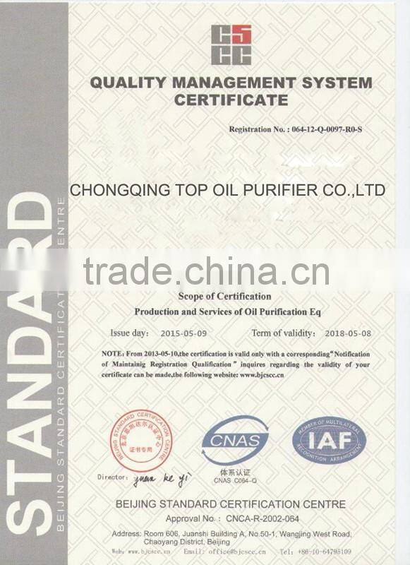 Chongqing TOP Oil Purifier Manufacture Co., Ltd is a professional leading manufacturer of oil purifiers and oil testers. We have tremendous strength in the fields of research, development and manufacturing with professional mass-production ability, perfect sales network, excellent after-sales service as well as a perfect image we earned in the competitive market.